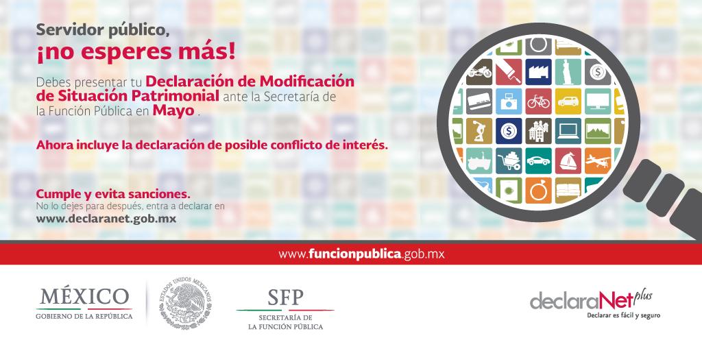 Servidor público obligado ¡No lo dejes para después!, haz tu #ModificaciónPatrimonial2015 en declaranet.gob.mx