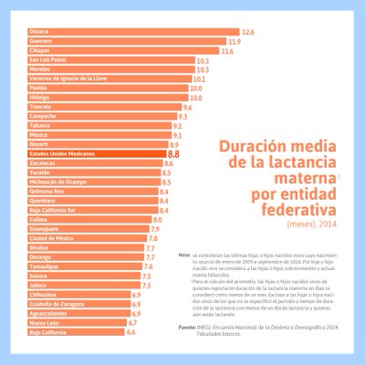 Duración media de la lactancia materna en #México #INEGI #SemanaMundialDeLaLactanciaMaterna bit.ly/2aEGV3y